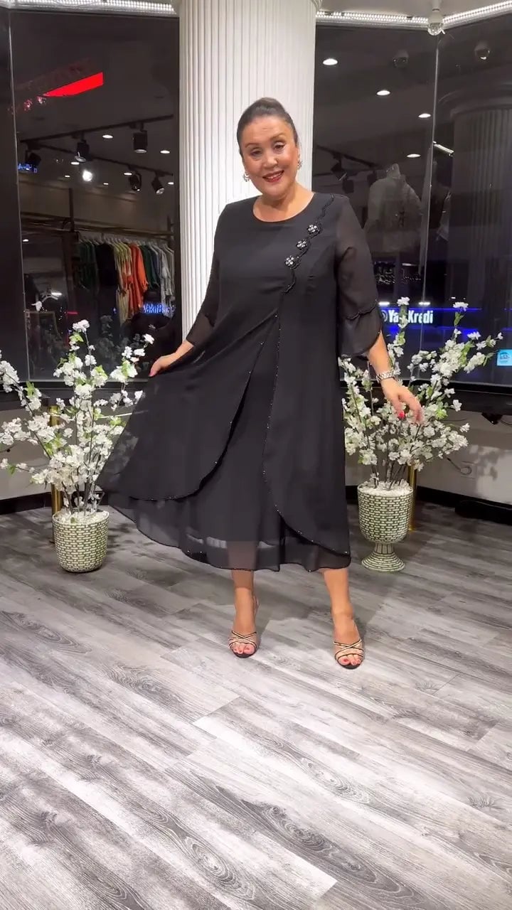 💕Damska luźna sukienka z szyfonu w jednolitym kolorze